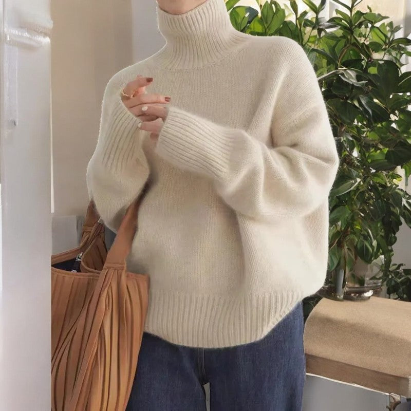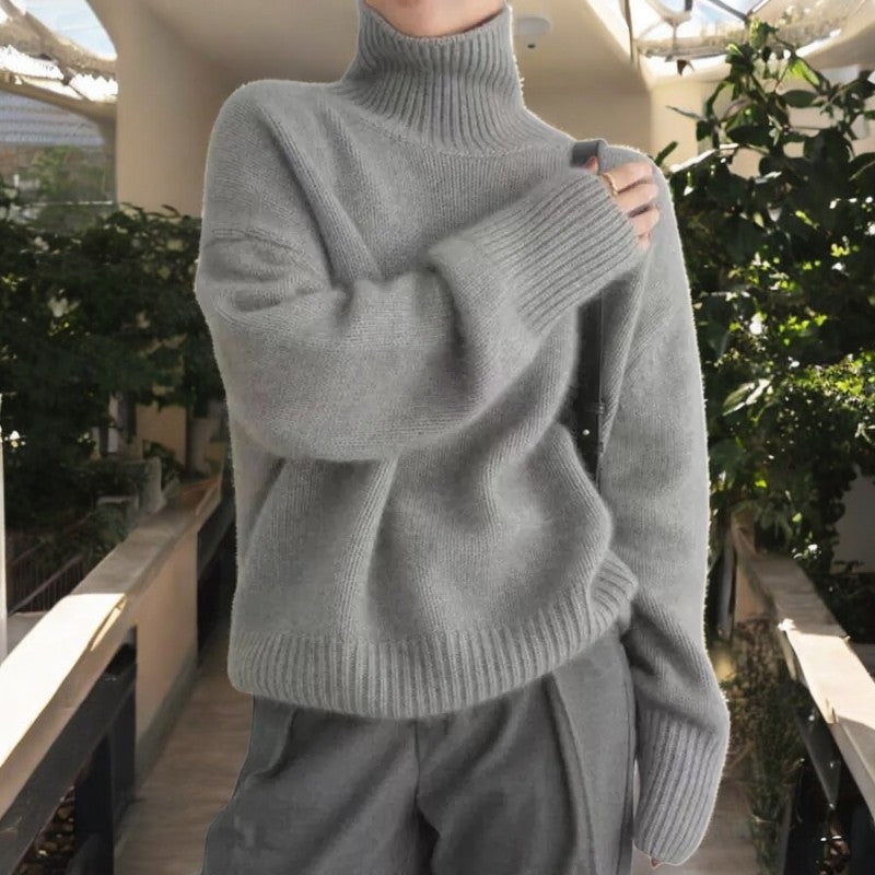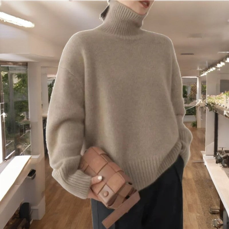 Elin™ kasjmirgenser med rullkrage er designet for optimal komfort og varme. Den er laget av luksuriøs kasjmir og har en myk og behagelig følelse, mens det forsterkede innerfôret sørger for at du holder deg varm i de kalde månedene. Rullkragen gir en ekstra touch av eleganse, noe som gjør den perfekt å bruke alene eller i lag.
